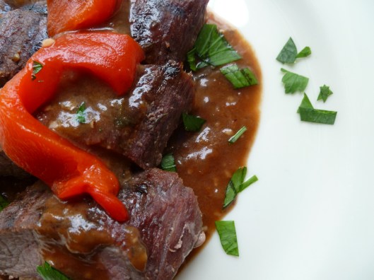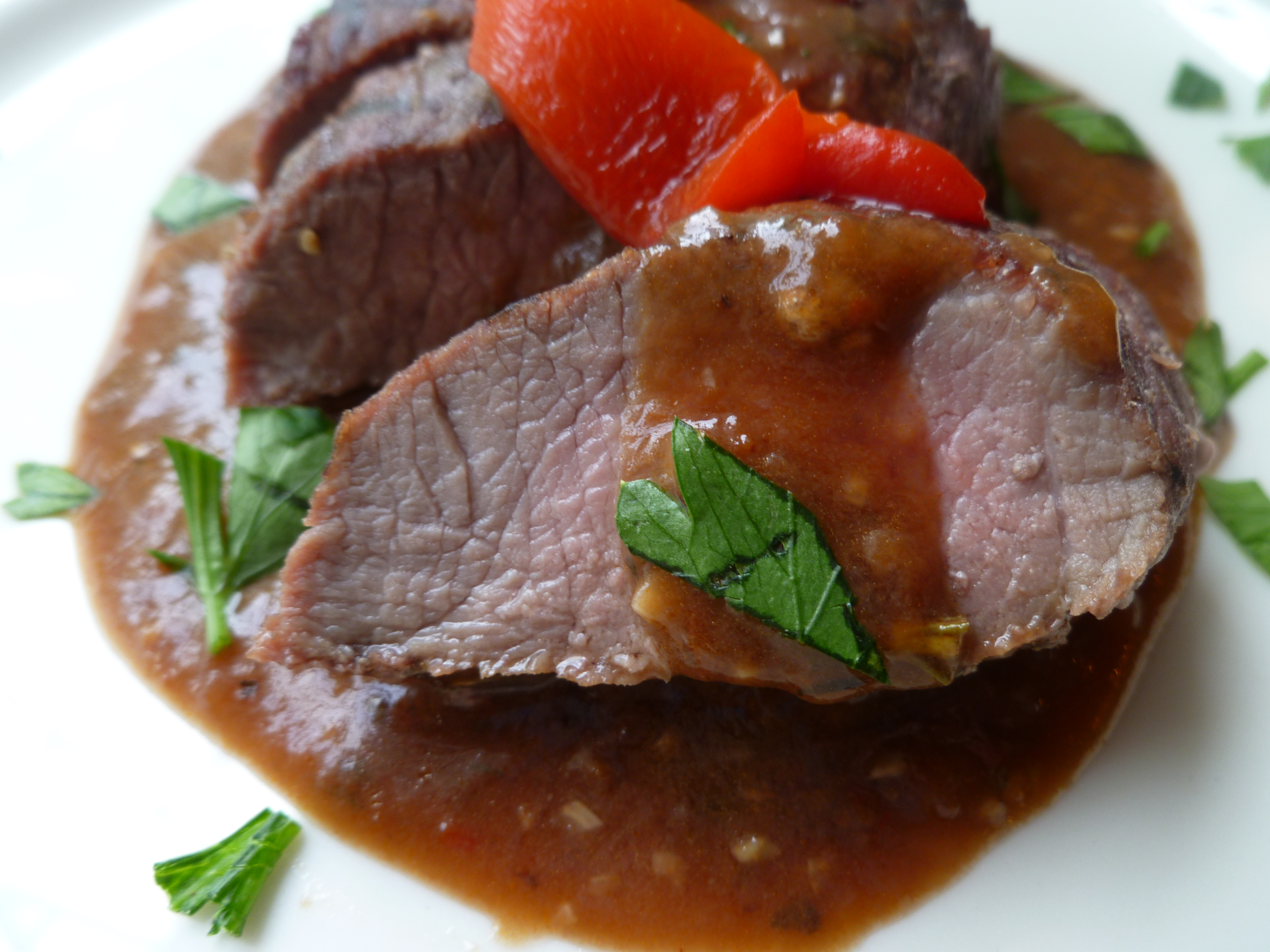 1. Pour the reserved marinade into the casserole and bring it to a boil. Add the demi-glace and reduce the sauce, uncovered, over medium heat until it thickens…