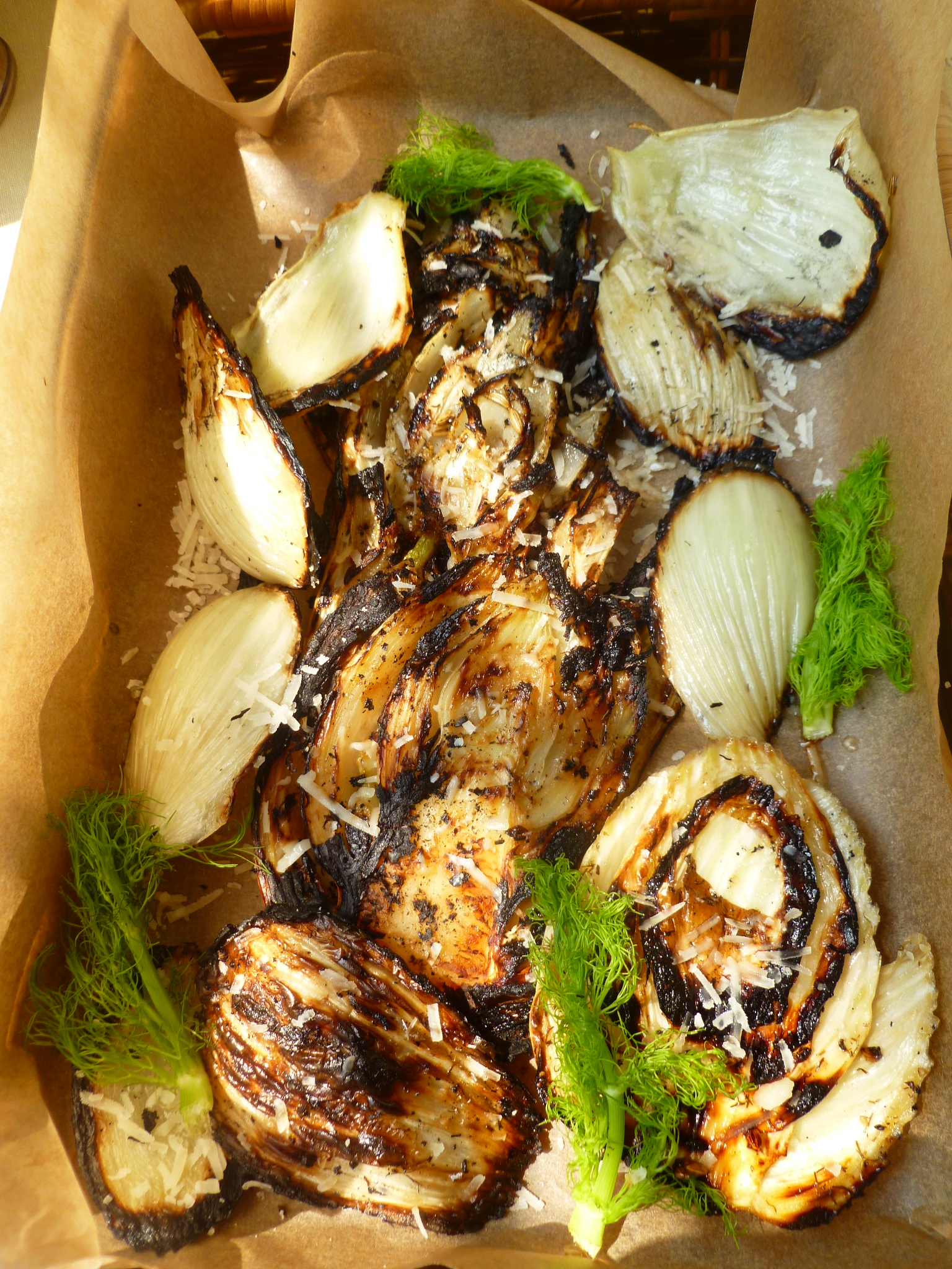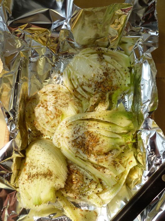 - an ovenproof Tray or Cassserole lined with Aluminum Foil to hold the grilled fennel