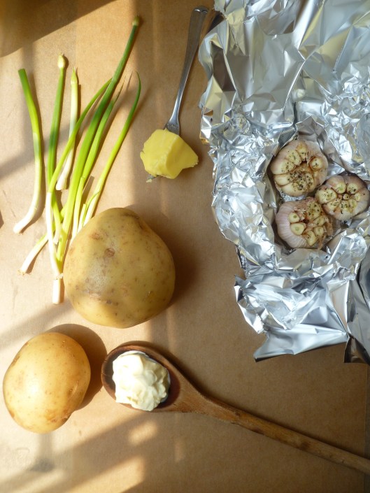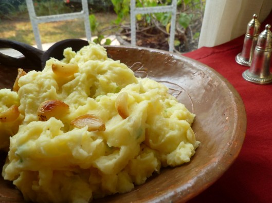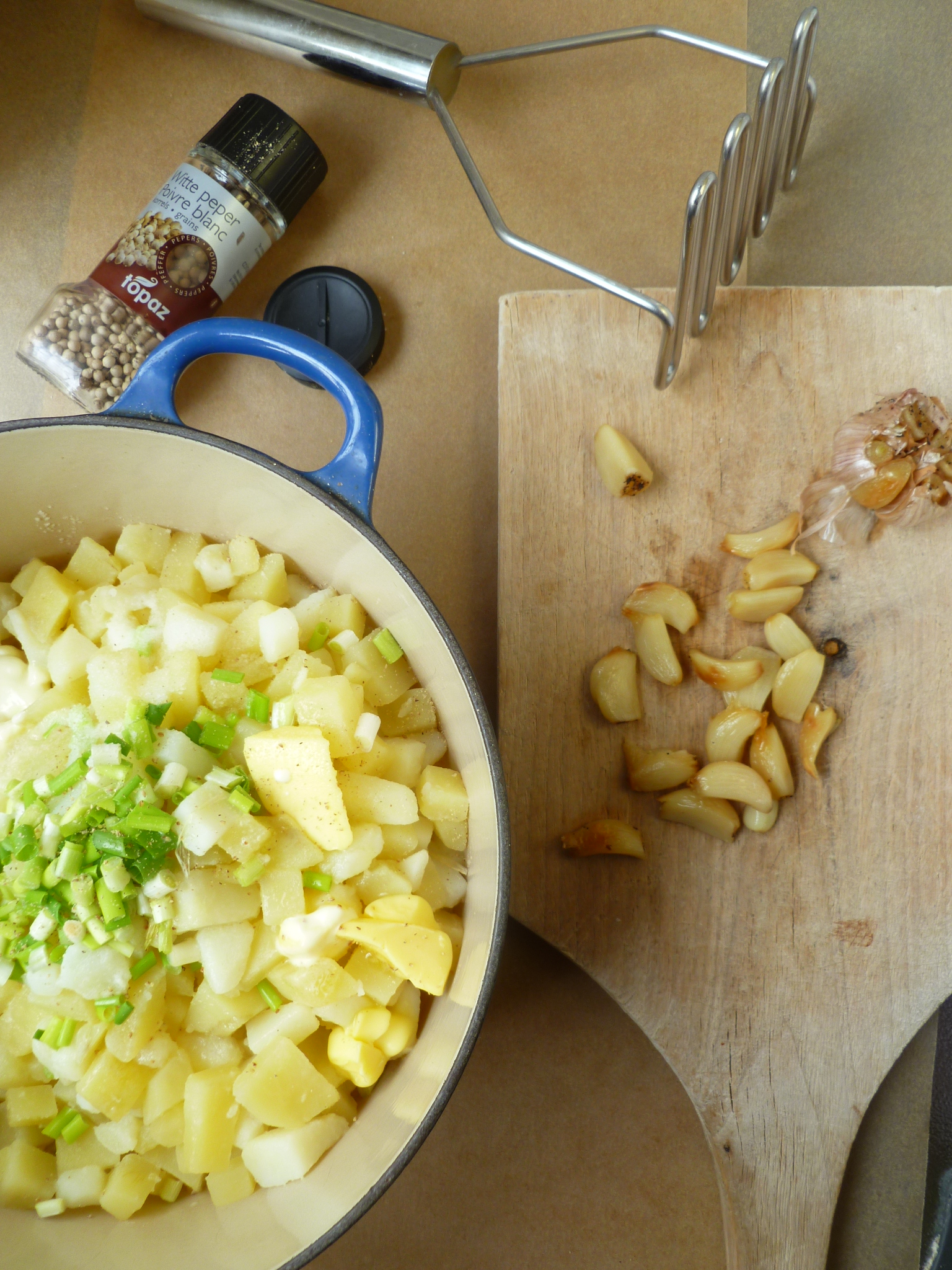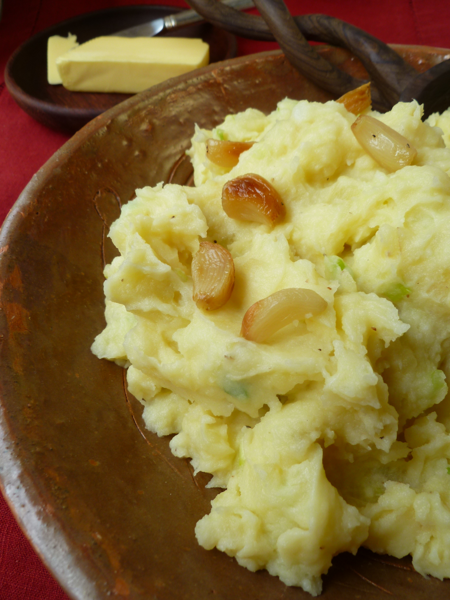 how to roast garlic, mashed potatoes with green onions, mashed potatoes with roasted garlic, Purée de pommes de terre à l'ail rôti, whipped potatoes