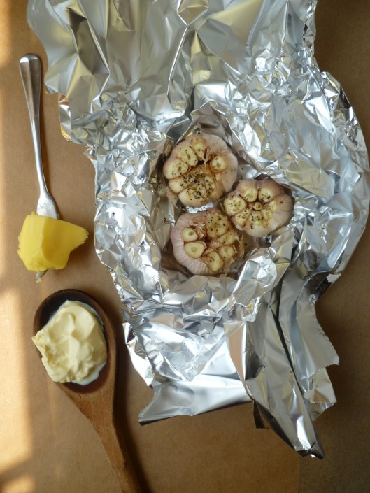 - a Rimmed Baking Tray lined with a large piece of Aluminum Foil for roasting the garlic