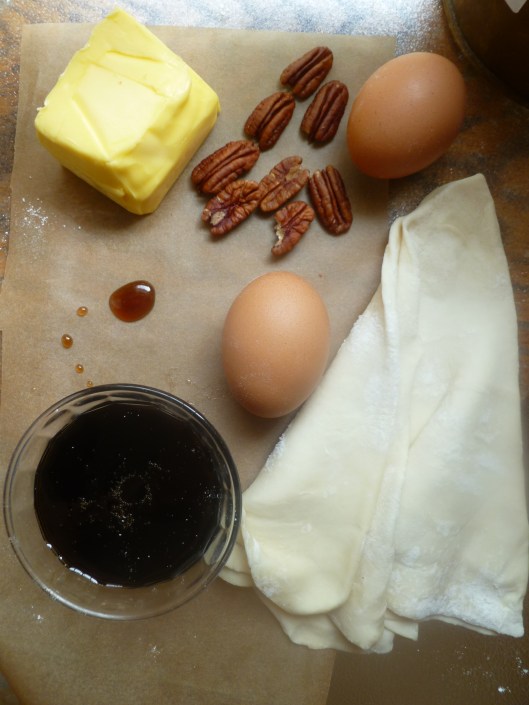 The word ‘baroque’ suggests something generous and grand, and is used to describe one version of this pecan pie. What goes into it is no different from what goes into the Traditional one, but the amounts of everything are abundantly proportioned. Such a pie, baked in a large tart pan and in a puff pastry crust, will serve 10 – 12 people. Including pie on a menu for this number of people becomes uncomplicated. There is no need to make a second pie because this is two-in-one.