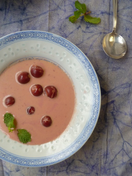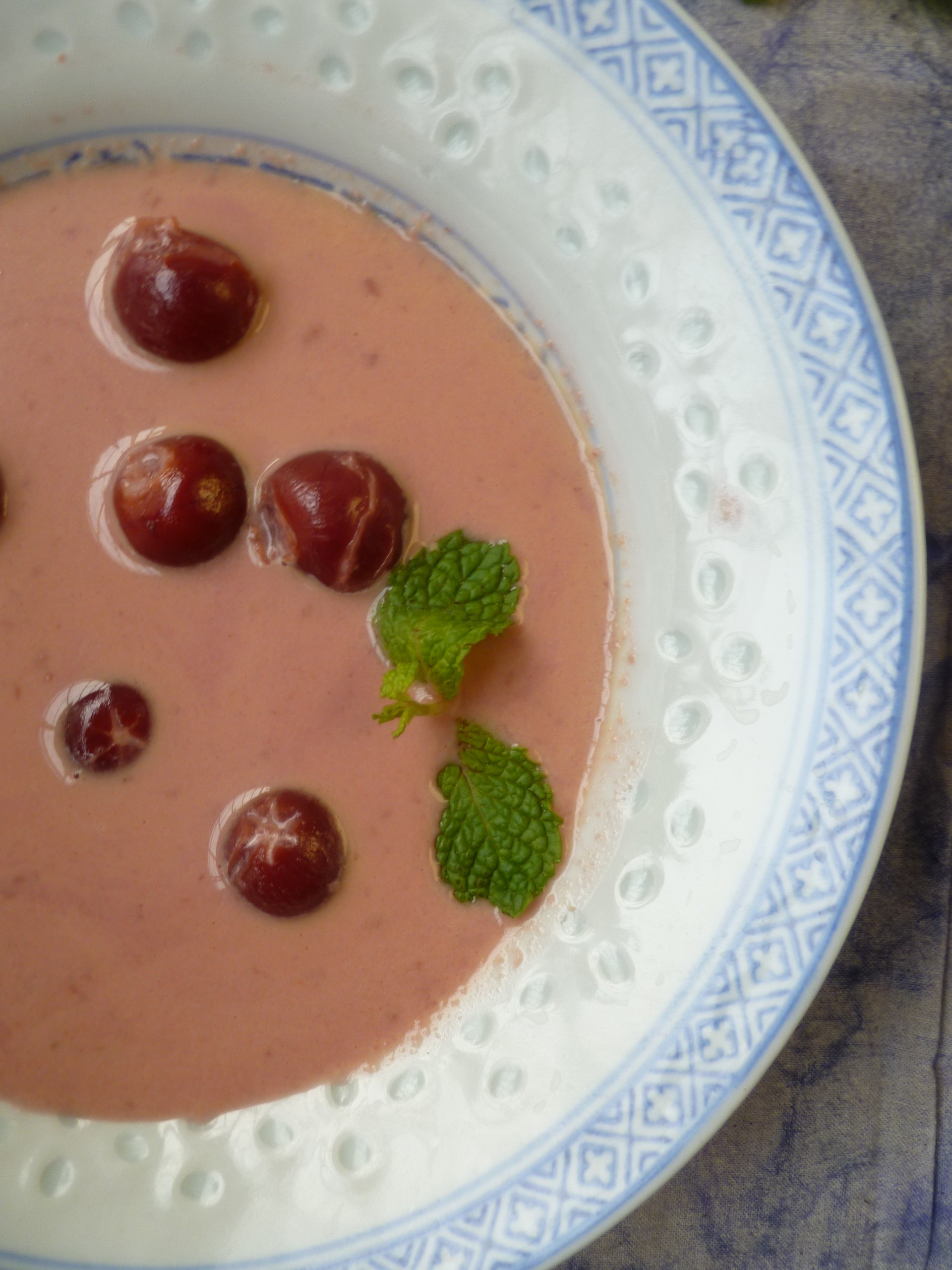 One could also order a 3-course Menu, and Cold Sour Cherry Soup was often one of the First Course options. Thus we arrive at the point of this bit of restaurant nostalgia. The Green Tree, true to its Hungarian origin, offered its fruit soup at the beginning of a meal. While there are fruit soups which may become dessert, a Hungarian cold fruit soup isn’t one of them.