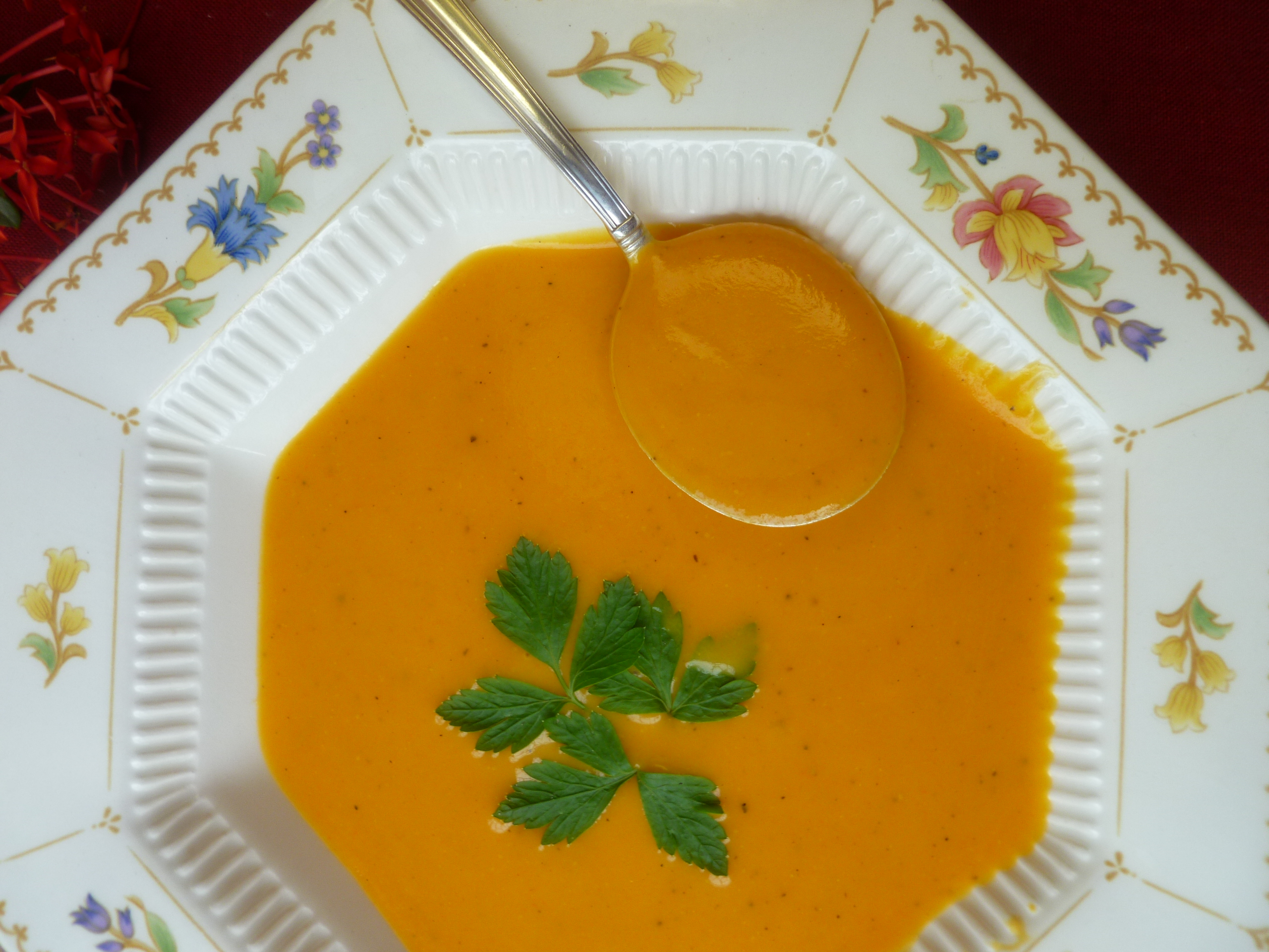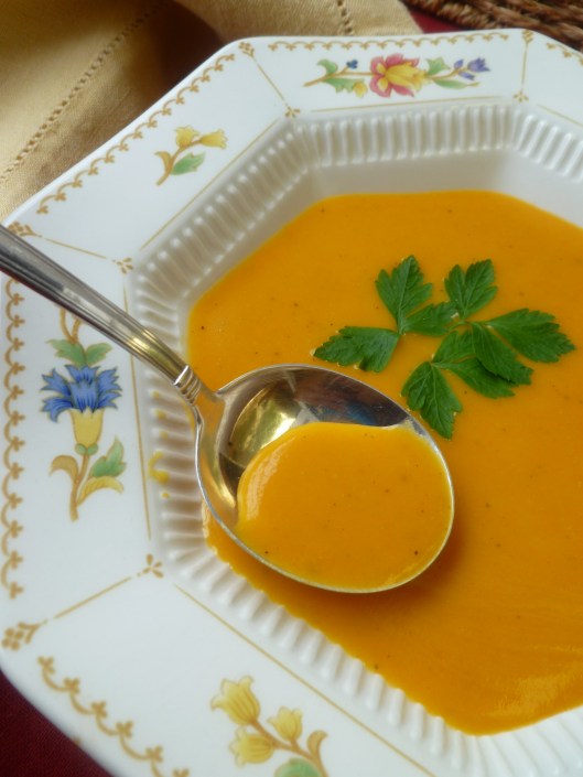 Velouté de carottes au curry ~ a warmly spiced French carrot soup (for 4 people and easily increased to serve more)