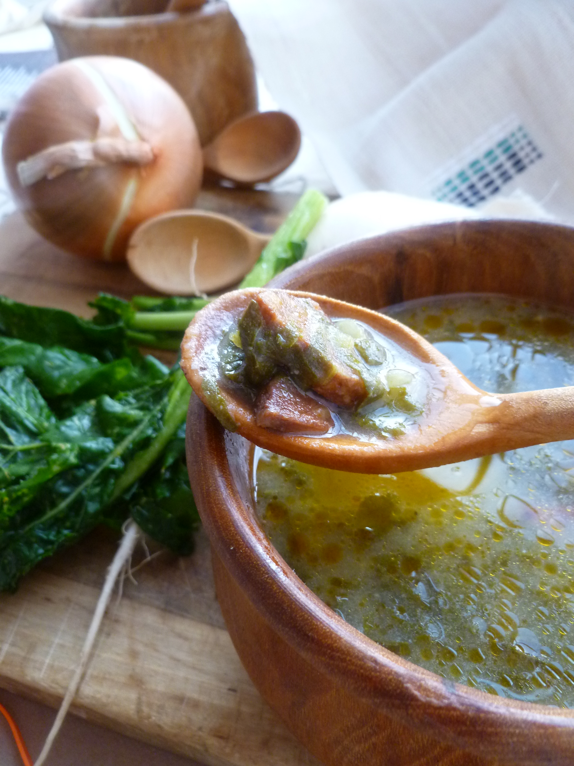 recipe for greens soup, recipe for turnip greens, soup recipe with chorizo sausage, soup recipe with kale, traditional Portuguese recipe