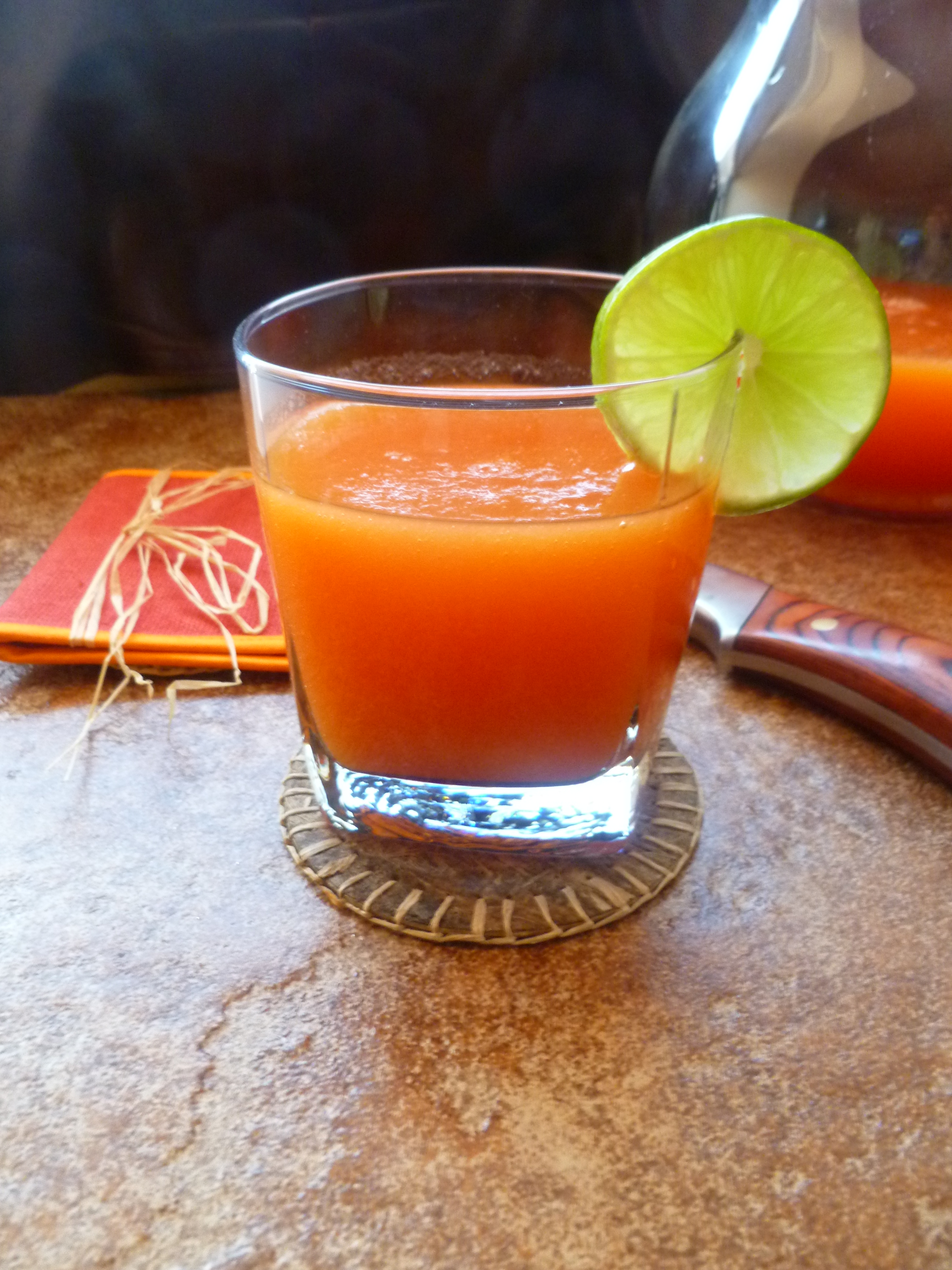 Papaya Aqua Fresca is a drink haling from Kit Carson’s adopted home in the American Southwest, or, rather, from the Hispanic culture of which it richly partakes.  It begins this present day informal evening Menu… And, being a July 4th dinner, it seems fitting that the menu should not be derived exclusively from one region and that it should be….’down-home’.