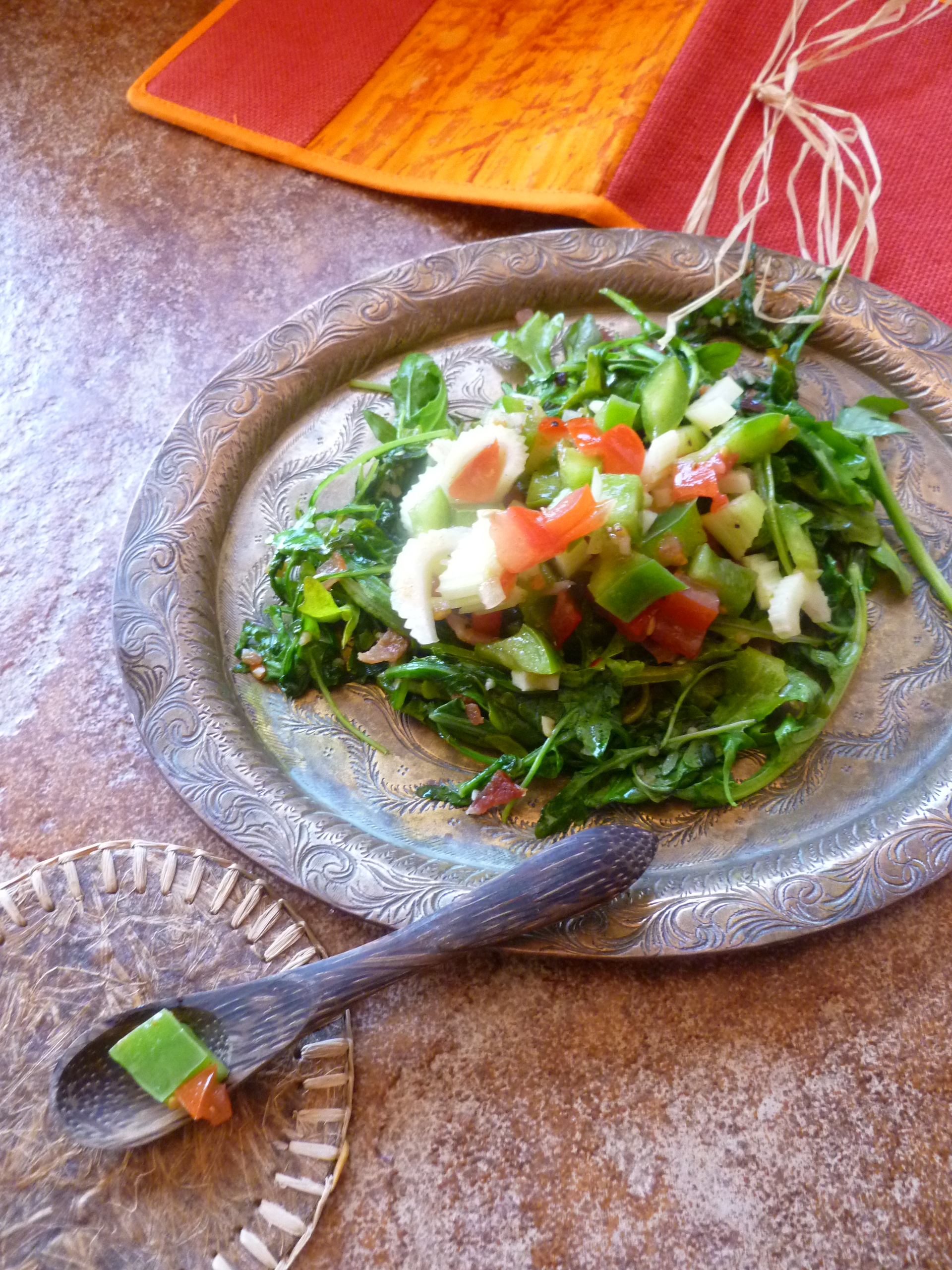 fresh vegetable relish, greens and bacon recipe, hakurei turnip greens and bacon, homemade French dressing, kale and bacon, spinach and bacon, traditional American vegetable recipe