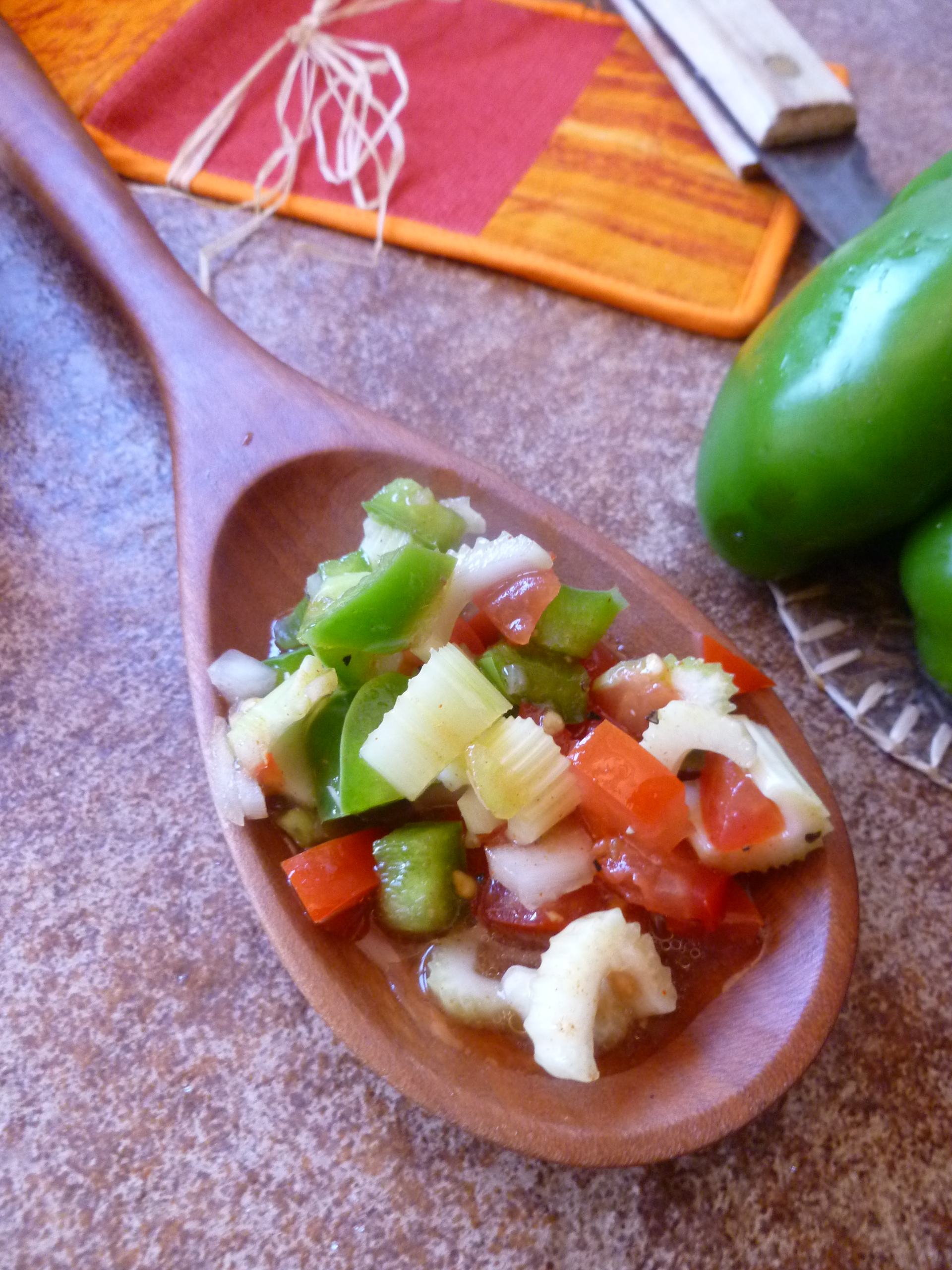 Note: Garden Sass requires a little French Dressing….and the recipe for it is below in Part III. ‘Sass’ not used for this recipe keeps well refrigerated for several days.