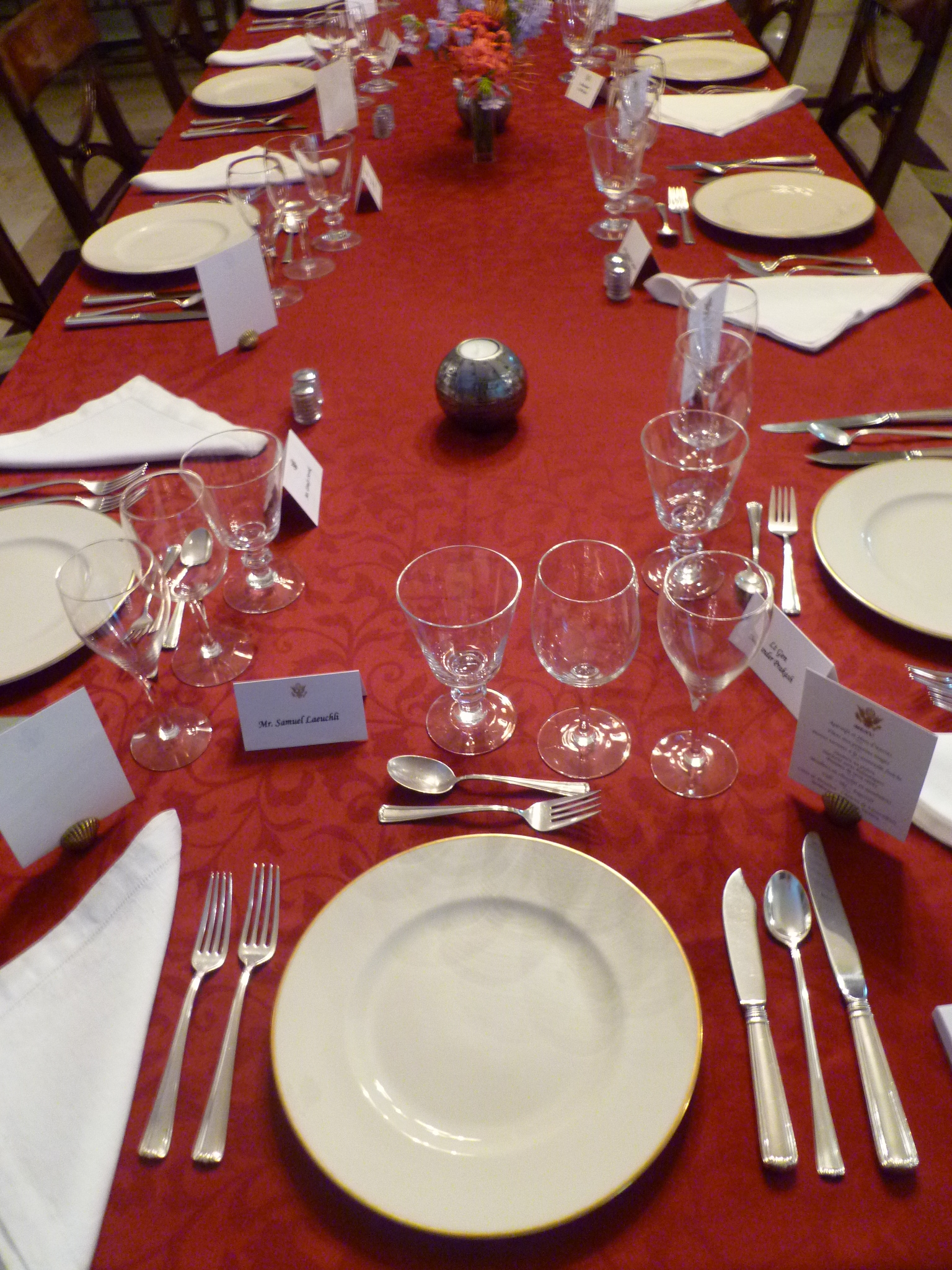 (The Menu title is explained here. The various items in the menu are given first in French because the Main Course and Dessert don’t really have satisfactory English names. Also, the French and English names for the Pumpkin recipe are different.)