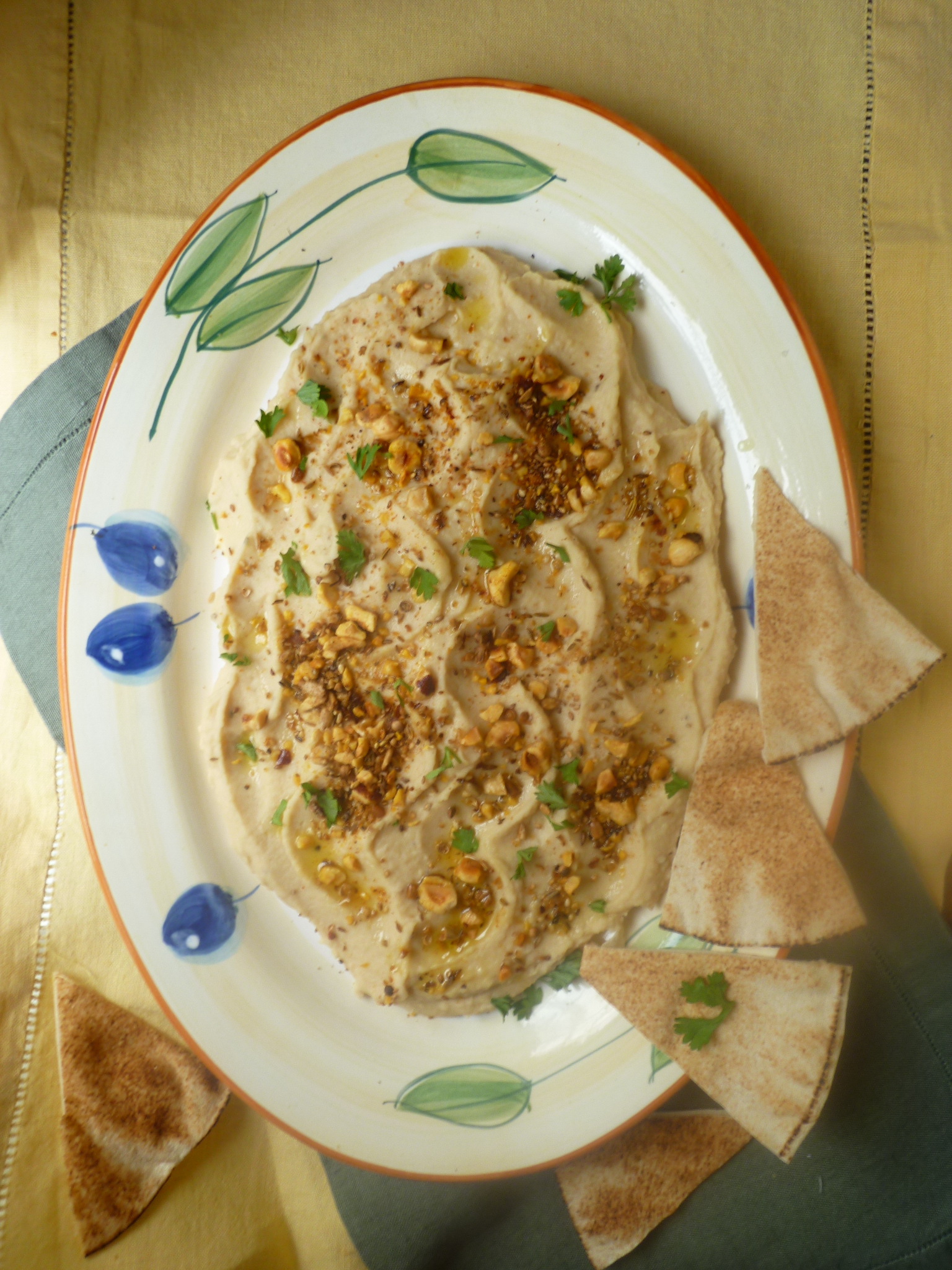 Spreadable Butter Beans with Dukkah and Pita Chips Herbed and Spiced