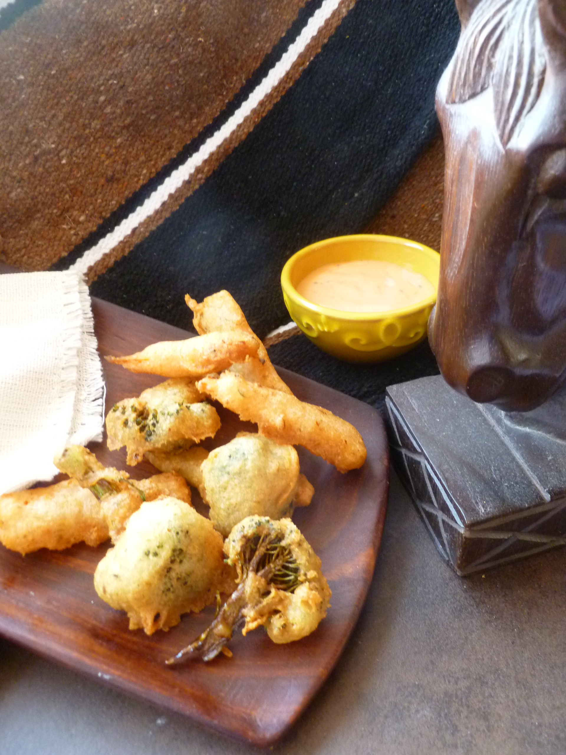 sauce amora beerbatter carrotsand brocoli 009              Caper and Scallion Beer Batter Fried Carrots and Broccoli with Sauce Aurore